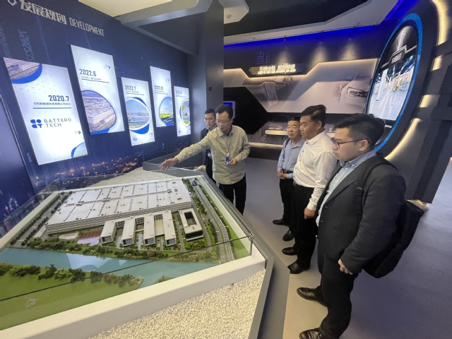 瑞浦兰钧能源股份有限公司是青山实业在新能源领域布局的首家高新技术企业,专注于锂离子电池的研发、生产与销售,产品广泛应用于储能、智能电网等领域。在章勇的陪同下,仇中柱一行首先参观了企业展厅,通过数字化沙盘、核心产品展区及全球业务布局图,深入了解企业发展历程以及其在储能电池领域的创新成果与市场竞争力。