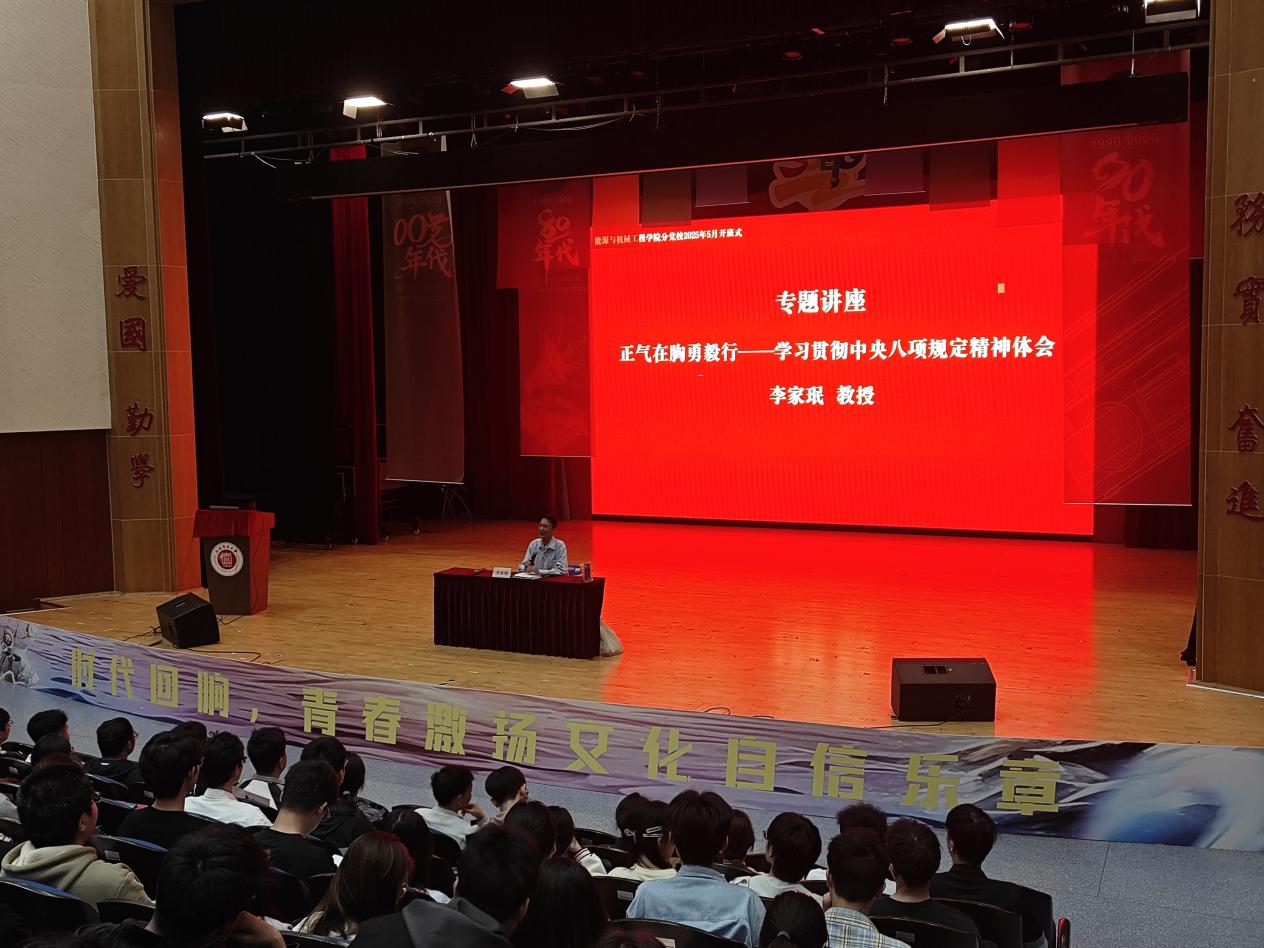 李家珉教授作开班第一讲,主题为《正气在胸勇毅行——学习贯彻中央八项规定精神体会》,为学员们带来了一场精彩纷呈的专题讲座。李教授结合多年党务工作经验,深入浅出地解读了中央八项规定精神的核心要义,通过生动案例剖析了作风建设的重要性。他特别指出,青年党员和入党积极分子要系好人生的“第一粒扣子”,从思想上筑牢防线,在实践中锤炼作风。
