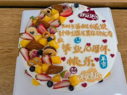 周婷为校友们送上学校定制的毕业十周年纪念蛋糕,甜蜜的蛋糕不仅承载着校友们对往昔校园时光的怀念,更象征着校友与母校之间深厚的情感纽带,也见证着师生情谊绵延不息。十年岁月的凝结,是校友们从青涩学子到社会栋梁的蜕变,也是学校对校友的持续关注,学校永远惦记着校友们的成长和发展,并生动诠释着“无论多远,你们仍是母校的孩子”。