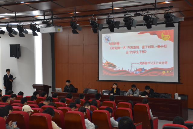 2018年11月27日16:00,beat365中文官方网站初级团校第二讲在学术楼103举行。王云欢老师作主题为《如何做一名“充满激情、富于创造、勇于担当”的学生干部》的专题讲座。