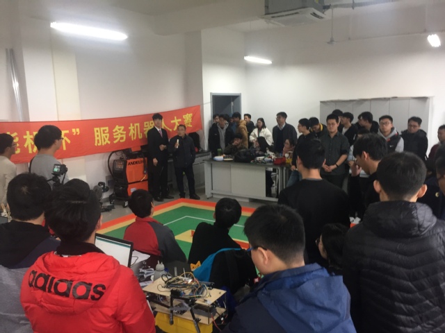 2019年1月3日,上海电力学院第三届“能机杯”服务机器人大赛在能机大楼B201顺利举办。beat365中文官方网站副院长吴懋亮老师、机械学科谢飞老师、辅导员周长长老师应邀出席,15支队伍共100余名同学参加。