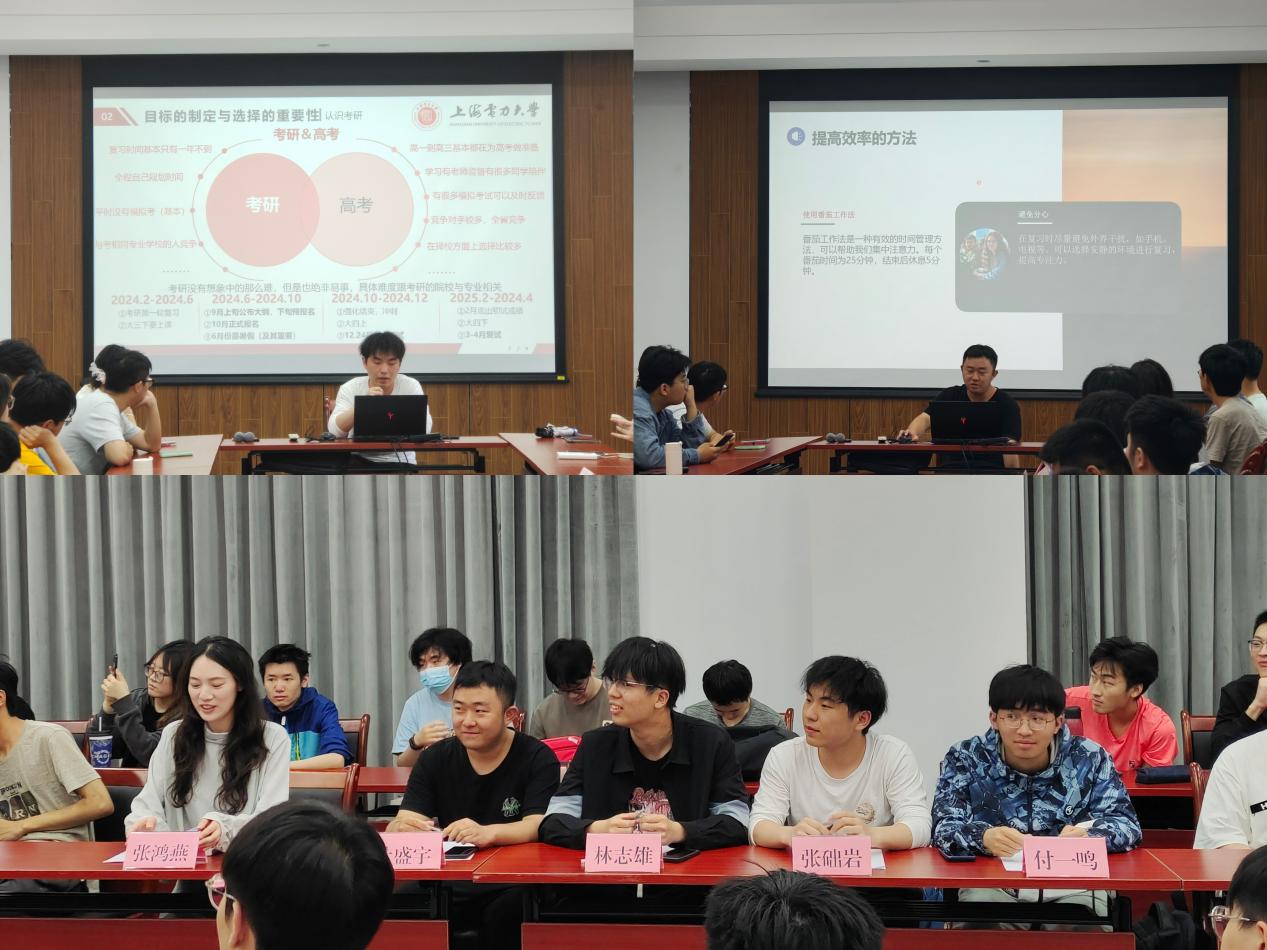 2025年5月20日,“青春站台・红色研途号”考研分享会在学术楼305会议室顺利举行。考取上海交通大学的付一鸣、东南大学的张础岩、西安交通大学的林志雄及本校电气专业的叶盛宇,结合自身考研经历,面向2022级学生做经验分享。