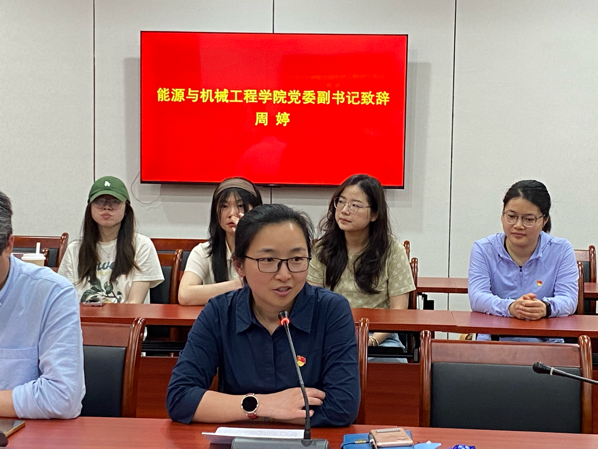 会议在庄严的国歌声中拉开帷幕。周婷在致辞中深情寄语毕业生党员,引用 “青年强则国家强”、“志不定,天下无可成之事”鼓励大家坚定理想信念,在未来的人生道路上勇担使命。字字句句饱含着对毕业生党员的殷切期望与美好祝福,为即将开启的新征程注入了强大的精神动力。