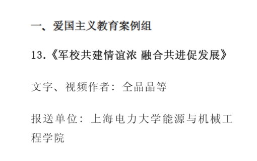 中国教育报面向全国高校征集爱国主义教育案(课)例、大学生爱国主义主题微视频,共收到作品约2000件。经过多轮审核,最终推选出135件优秀作品,其中优秀爱国主义教育案例25例。