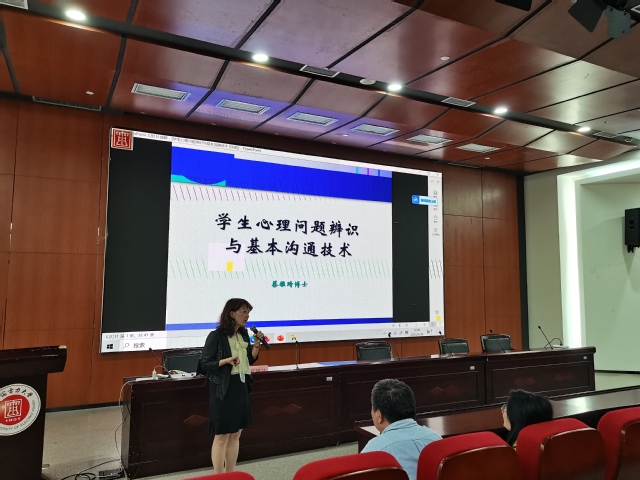 为深入贯彻落实立德树人根本任务,提升教师心理健康教育能力,构建和谐育人环境,5月30日,beat365中文官方网站组织开展“教师政治理论学习暨心理技能专题培训会”,活动特邀学校心理中心专职教师蔡雅琦博士主讲,学院全体教师参加,活动由心理专项工作负责人梅饶兰主持。