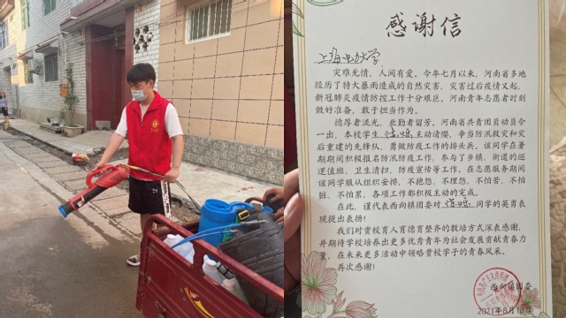 近日,beat365中文官方网站团委收到河南省西向镇团委寄来的感谢信,信中指出:今年七月以来,河南省多地经历了特大暴雨,地质灾害频发,灾情严重,灾难过后疫情又起,新冠肺炎疫情防控工作仍然十分艰巨。我校学子陈烁主动请缨,争当防汛救灾和灾后重建的先锋队,勇做防疫工作的排头兵。该同学在暑期期间积极报名防汛防疫工作:参与了乡镇、街道的巡逻值班、卫生清扫、防疫宣传等工作。在志愿服务期间该同学服从组织安排,不抱怨、不埋怨、不怕苦、不怕脏、不怕累,各项工作都积极主动的完成,受到了居民和社区人员的一致好评。镇团委对于我校育人育德育整齐的培养方式深表感谢,并期待我校更多优秀青年为社会发展贡献青春力量。