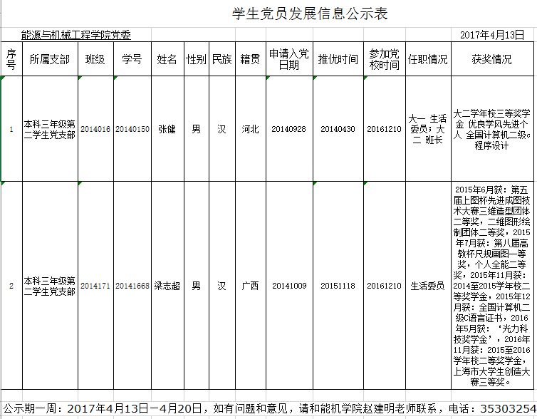 [党建工作]本科三年级第二学生党支部党员发展公示