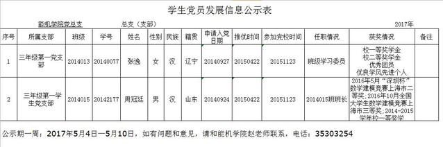 【公示信息】本科三年级第一学生党支部5月学生党员发展公示