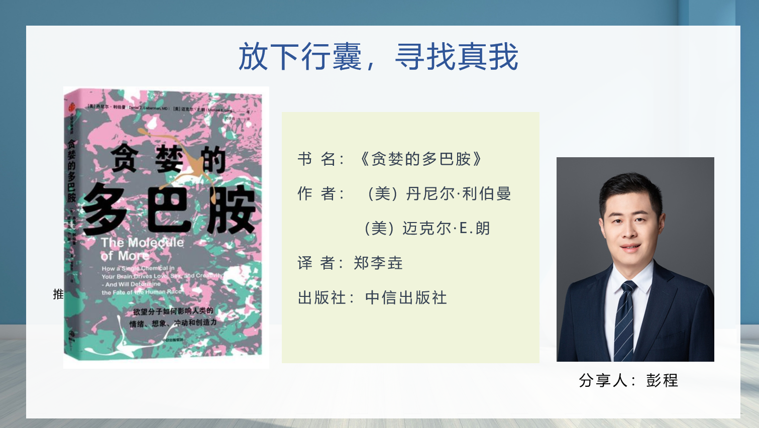 王文欢、彭程、王昊三位老师分别从“知己知彼,防疫不懈”、“放下行囊,寻找真我”、“同理陪伴,终身成长”方面分享了《应对焦虑》、《贪婪的多巴胺》、《非暴力沟通》三本书。他们从当前疫情下大家面临的焦虑情绪谈起,分享了引导式内观、渐进式肌肉放松、停止忧虑之解离法等应对焦虑的方法;从多巴胺对个人的积极与消极的两方面作用,传递了善于利用多巴胺、并不为其所控的不断完善自我的方法;从非暴力沟通四要素(观察、感受、需要和请求)鼓励老师们积极实践“非暴力沟通”,把良好的沟通方式应用到家庭、工作和社会生活中。