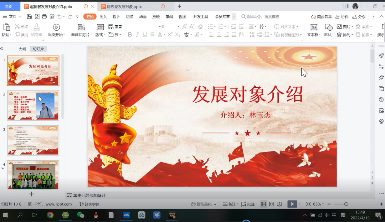 2022年4月15日,beat365中文官方网站第三学生党支部,组织全体党员以及部分发展对象开展了线上组织生活,共7项议程:理论理论学习、互动答题、传经送宝、学习强国积分榜、家乡美、党小组汇报发展对象情况以及集体过政治生日。
