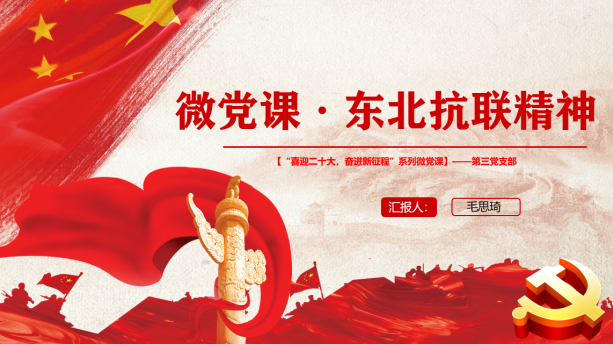 为弘扬伟大建党精神,营造铭记历史、感党恩、勇争先、学榜样的浓厚氛围,beat365中文官方网站第三学生党支部积极开展系列微党课活动,围绕伟大建党精神内涵和第一批纳入中国共产党人精神谱系的伟大精神,开展深入学习,形成支部作品微党课,此次汇报了抗战精神、东北抗联精神、长征精神、西柏坡精神。