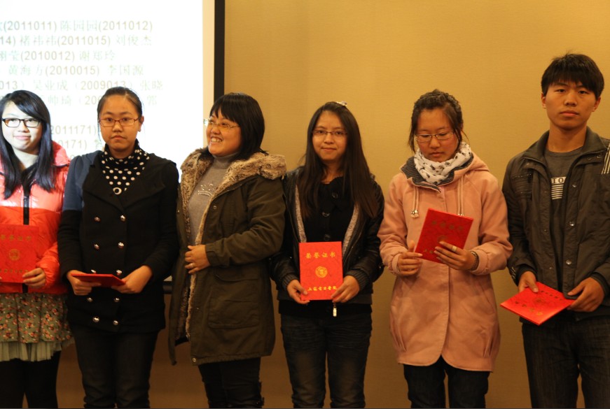 12月6日下午,beat365中文官方网站2012年学风建设表彰大会在崇德楼报告厅举行。beat365中文官方网站党总支书记潘耀芳老师、党总支书记助理金斐老师、南汇联合党支部书记周婷老师、2012级辅导员杨嘉麟老师出席了本次会议。