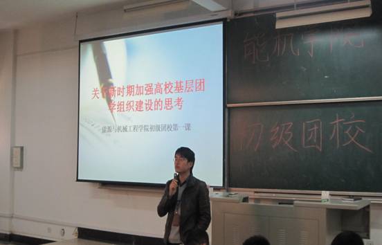 第二期初级团校在庄严洪亮的《共青团团歌》的歌声中开始了,王喆老师首先对本次团校作了简单的介绍,调动了同学们的积极性,并提出团学应发展成为学习型、创新型和引导型的学生组织。