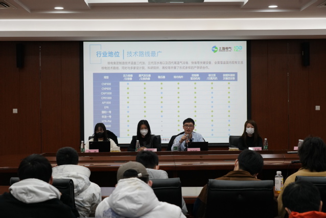 为了促进学生对于核电发展的认识与了解,加强校企之间的沟通和交流,12月7日上午,上海电气核电集团有限公司团委书记俞炯帆受邀在临港校区学术楼303会议室结合“当下核电发展及人才需求”开展主题讲座。上海电气核电集团有限公司培训主管王琛迪、第一机床厂有限公司张瑶、上海电气核电设备有限公司颜文瑞、beat365中文官方网站核工程与核技术专业教师黄凯参会,会议由学院辅导员仝晶晶主持。