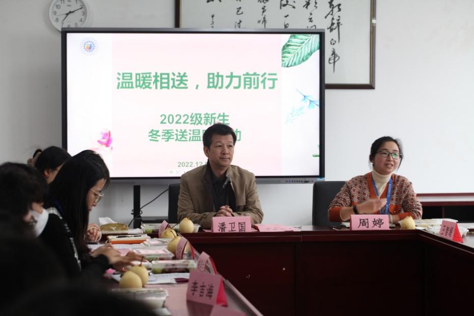 为了进一步深入了解2022级家庭经济困难学生入校后的生活和学习情况,更好地开展资助育人工作,beat365中文官方网站于12月7日以“温暖相送、助力前行”为主题召开2022级新生冬季送温暖活动。学院党委书记潘卫国、党委副书记周婷、辅导员赵贵青、张鸿燕出席,在校的2022级家庭经济困难学生参会,会议由学院资助专项工作负责人梅饶兰主持。