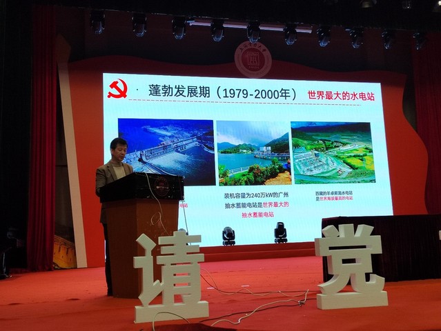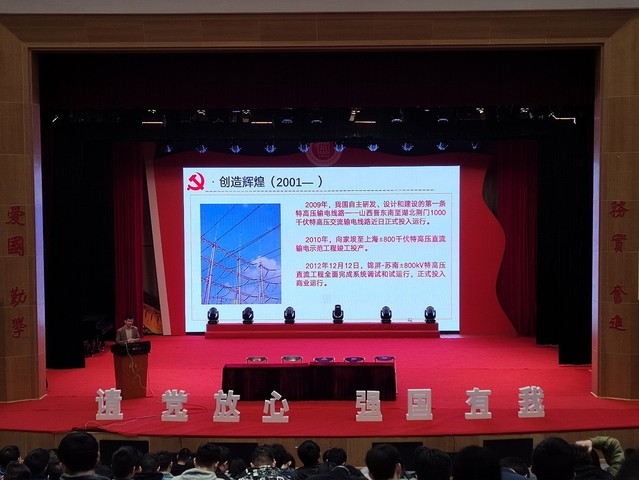 潘卫国从“我国电力工业发展历程”“党的二十大报告描绘新蓝图”“新时代青年奋进新征程”三个方面展开,为同学们总结了一百多年来的中国电力工业的发展历程,从艰苦创业到蓬勃发展,再到如今的创造辉煌,都值得每一位电力人为此感到骄傲和自豪。