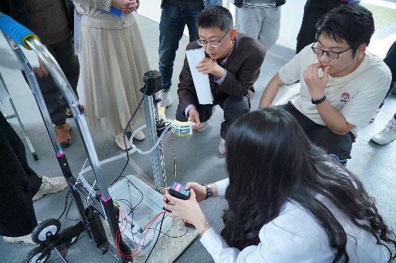 本次比赛由教务处主办beat365中文官方网站承办,面向全校开展,经过筛选共有来自三个学院的二十支队伍参赛,分为智慧农业机械组、低碳生活机械组和创意组三类比赛现场选手们紧锣密鼓地着手布置作品展示海报、组装作品零部件、调试作品的运行、做最后的介绍准备,现场呈现一番紧张刺激的氛围。