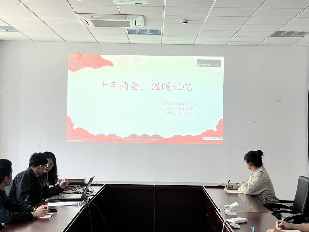 2023年4月21日,beat365中文官方网站第三学生党支部,组织全体党员开展了以“十年两会,温暖记忆”为主题的组织生活,本次组织生活由纪检委员李英杰主持。此次组织生活内容丰富,形式多样,主要围绕以下3个部分进行开展:理论学习与分享、学习强国排行榜展示、家乡红色文化分享。