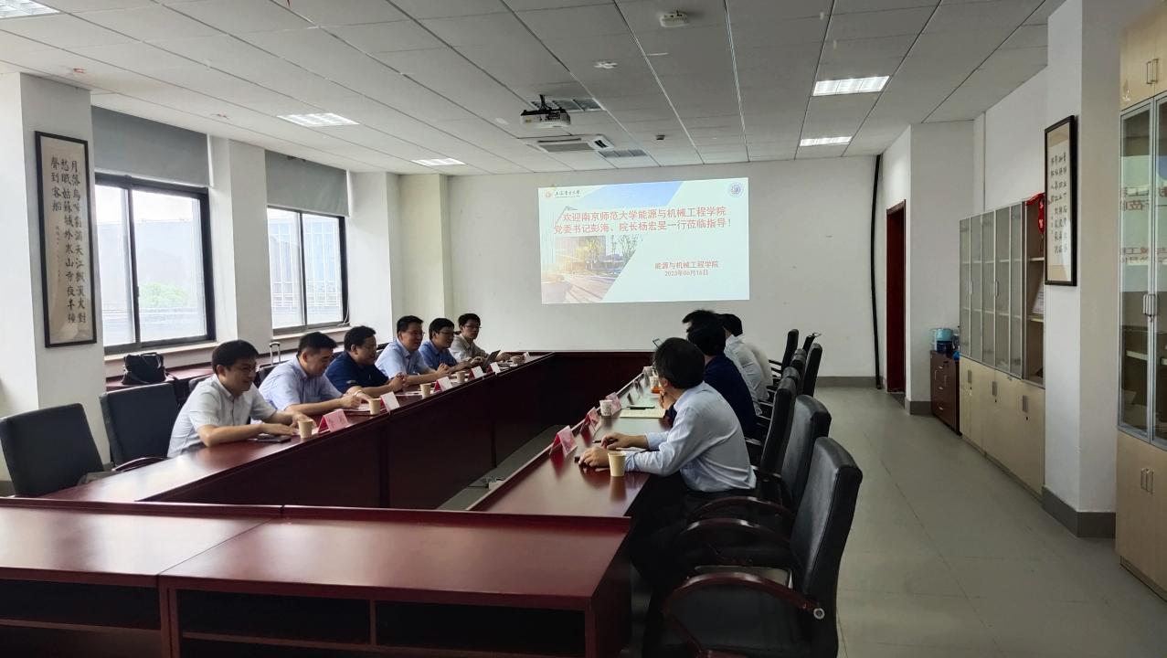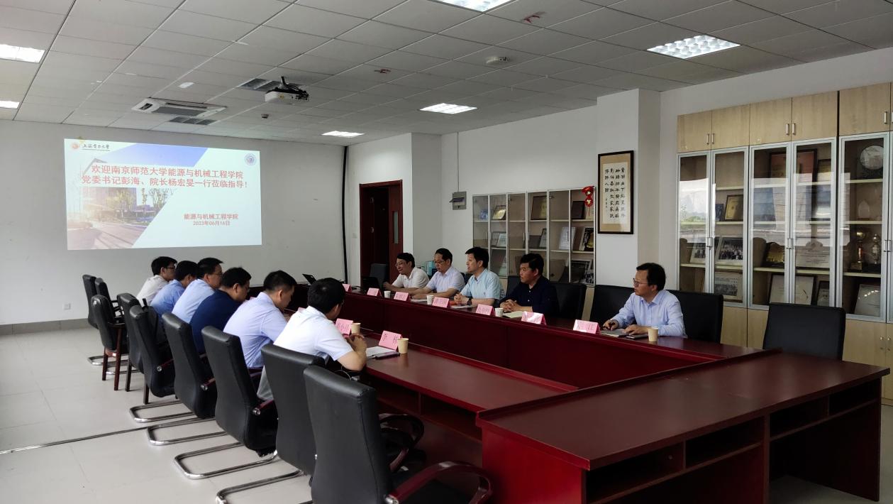 为深入开展学习贯彻习近平新时代中国特色社会主义思想主题教育,探索新时代专业人才培养模式、创新协同育人体系,6月16日南京师范大学beat365中文官方网站党委书记彭海、院长杨宏旻一行来我校beat365中文官方网站开展调研交流。beat365中文官方网站党委书记潘卫国、院长朱群志、副院长仇中柱及相关老师参加了调研。