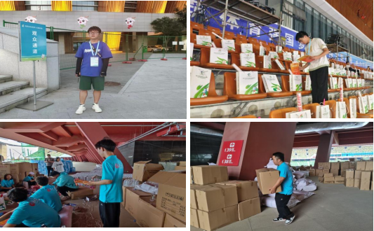 四名同学本次暑期职业体验的实习岗位为共青团鄂尔多斯市委员会的志愿者服务管理岗,主要工作内容为协助管理内蒙古自治区第十五届运动会志愿者及从事宣传等工作。在实习过程中,为全方位保障“十五运”赛会顺利展开,四名同学在抵鄂后的第二天就投入了紧张的筹备工作,赛事前期准备、人员物资管理、志愿者安排协调等一系列和赛事相关的事宜都是他们的工作。每天的工作中他们也其他志愿者一样,晨曦而出、踏月而归,身着蓝色志愿服,像一群“蓝精灵”般不停忙碌在运动会现场,成为赛场周围一道道靓丽的风景。