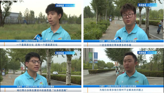面对不同的岗位要求、各异的赛程安排、经常不规律的就餐时间等实际困难,同学们没有丝毫怨言,努力在实践中学习、适应、调整、提升自己,全心全力投入到赛事保障工作中,以高度的责任感展现出了专业的服务态度和无私的志愿精神,获得了各方的高度认可和一致好评。鄂尔多斯市融媒体中心在“十五运”赛会的宣传报道中,专门对来自我校的这四名同学进行采访并予以高度的评价。