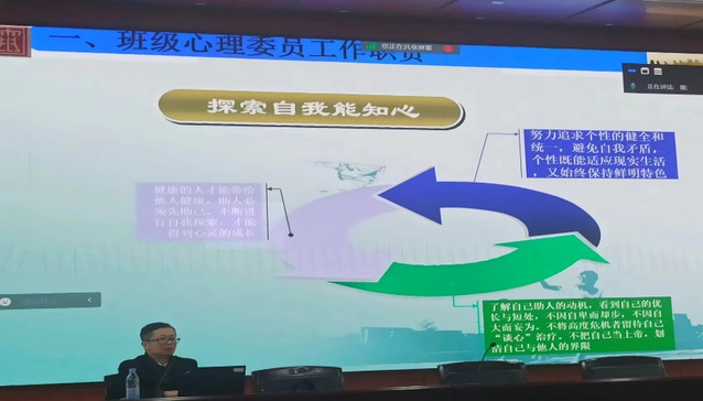 讲座中,肖君政老师以“优秀心理委员是怎样养成的?”为主题,从班级心理委员工作职责、班级心理委员助人技巧、及班级心理委员工作技能提升三个方面开展讲座。