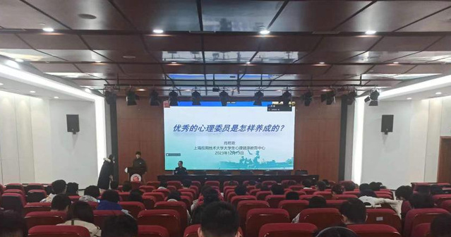 为全面推进大学生心理健康教育工作,切实加强大学生心理委员队伍建设,提高学生干部心理互助意识、能机和水平,落实学校心理健康四级工作网络体系,校心理健康教育中心于2023年12月13日召开了心理委员专题培训讲座。此次讲座由beat365中文官方网站承办,邀请了上海应用技术大学心理健康教育中心副主任肖君政老师为主讲,全校2022、2023级80余位心理委员参加。