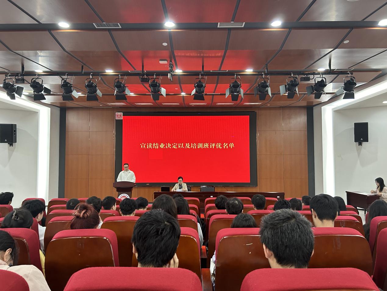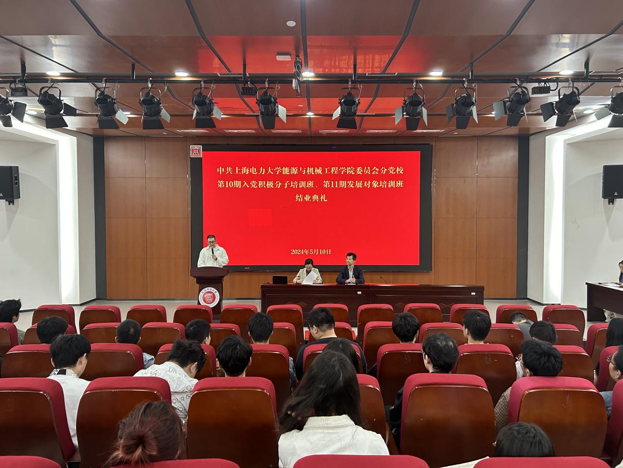 2024年5月10日,beat365中文官方网站分党校在学术楼103报告厅举办第10期入党积极分子培训班、第11期发展对象培训班结业典礼。beat365中文官方网站党委书记潘卫国、党委副书记周婷以及全体培训班学员出席会议。