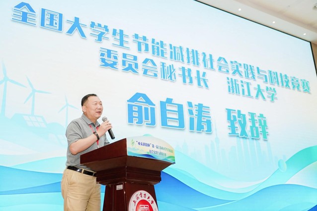 俞自涛教授在致辞中对第一届上海市大学生节能减排社会实践与科技竞赛的举办表示祝贺。节能减排国赛自2008年至今,已连续举办了16届,每年的参赛高校和参赛作品都突破新高,广大师生借大赛平台为节能减排事业贡献力量。同时希望此次参赛的青年学生能够赛出风格、赛出水平、赛出青春风采,充分展示青年大学生的创新思维和创新能力!