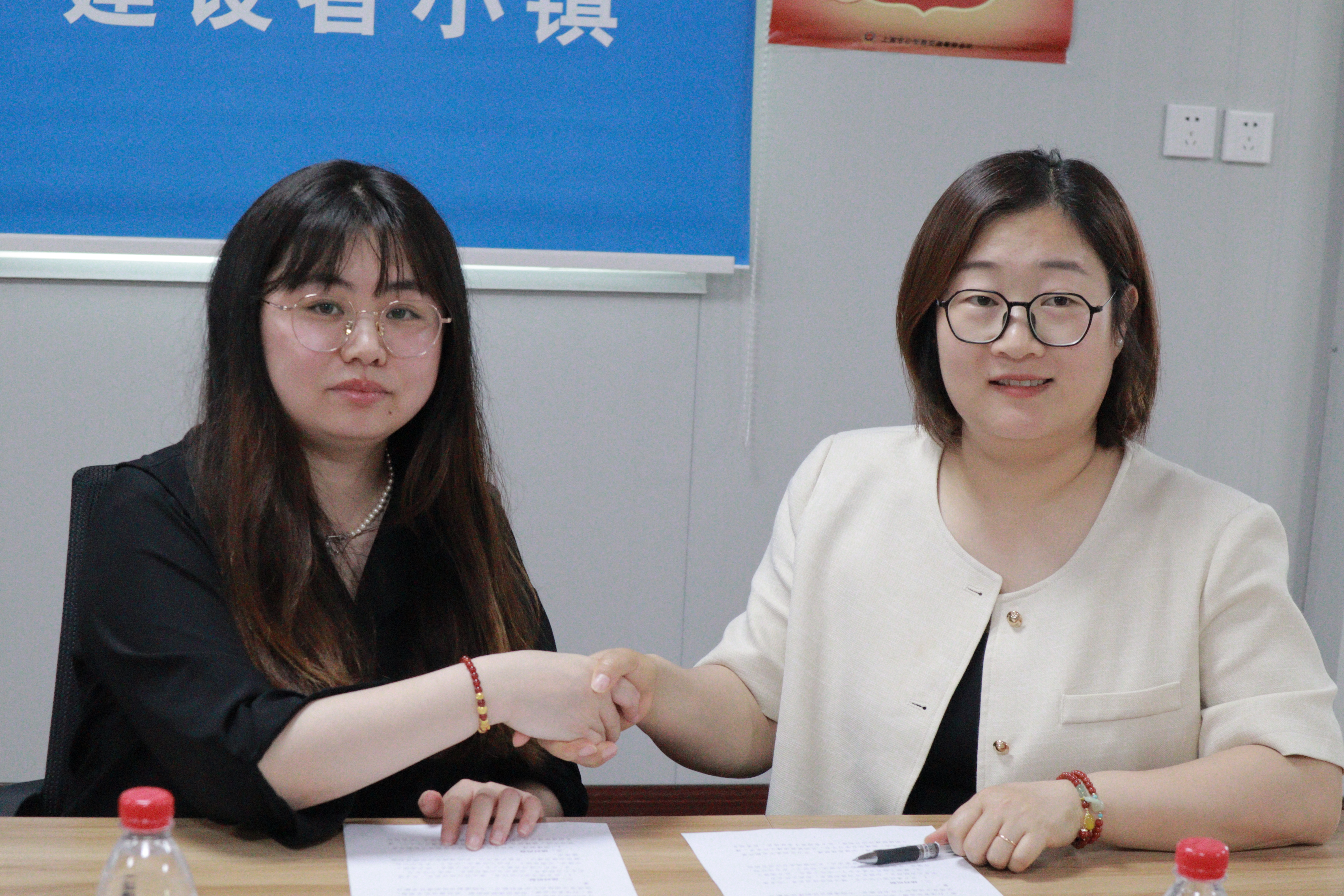 韩林岑和吴丹代表校社双方,共同签订了下一周期的校社结对共建协议书。