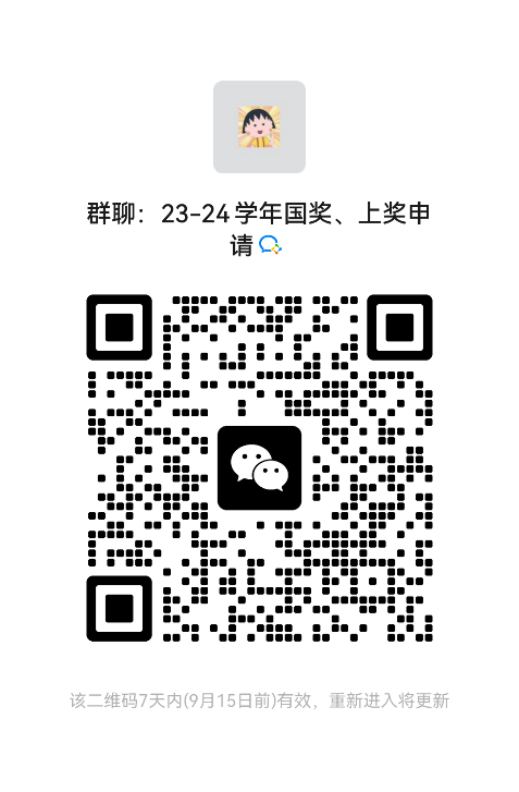 符合申请国家奖学金、上海市奖学金的同学需进行答辩,答辩时间初步定在918日,若时间有调整,另行通知。请申请同学进群(申请国励的同学不需进群)。