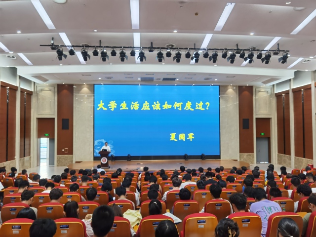 夏国军从新生入校引入,勉励大学生要上好转变观念发现天赋与培养兴趣树立理想这三门课。围绕自身求学经历入手,以高校学生被清退实例警示在座的大学生,为在场新生详细阐述了大学阶段和中学阶段学习模式的区别同时为大家讲解了大学学习特点及观念转变重要性和同学们强调大学学习主动性和创造性偏重