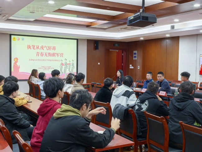 国无防不立,民无兵不安。为进一步推动征兵工作落实落细,提高同学们的国防意识,11月26日下午,武装部联合beat365中文官方网站在学术楼301开展了2025年上半年征兵宣传动员会。活动邀请部队现役官兵徐展坤、武装部军事教研室专员薛正豪以及优秀退役士兵代表曹永富参加,会议由武装部挂职干部、beat365中文官方网站征兵专项工作负责人仝晶晶主持。