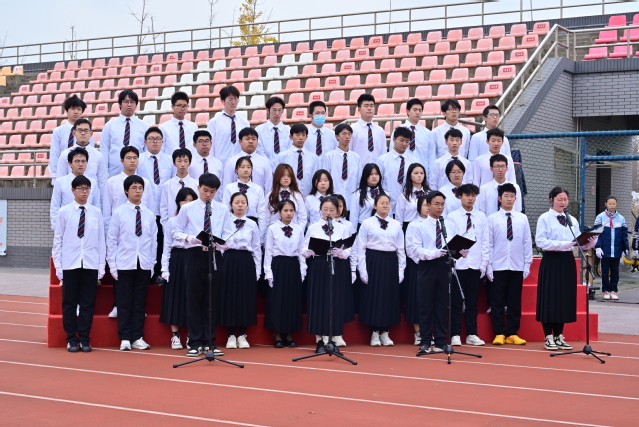 在国旗护卫队的庄严护卫下,鲜艳的五星红旗冉冉升起。警报声划破长空,全体师生庄严肃穆,低头默哀,向死难同胞致以沉痛的哀思与悼念。“民族觉醒,独立解放,改革振兴,国运日昌……”学生代表朗诵的《南京大屠杀死难者国家公祭日和平宣言》字字铿锵,声声振聋发聩,直击心灵深处,唤起人们对和平的珍视与捍卫。“让我们的笑容,充满着青春的骄傲,让我们期待明天会更好……”《明天会更好》的悠扬歌声中,饱含着青年学生对和平生活的热切向往与对未来的美好期许。现场激昂澎湃的朗诵《少年中国说》,更是气势如虹,彰显着新时代青年的蓬勃朝气与担当精神,“少年智则国智,少年富则国富;少年强则国强……”声声誓言,在校园上空回荡,振奋着每一个人的心灵。
