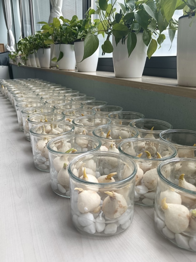 水培绿植,芳华永驻。分工会还为大家精心准备了郁金香盲盒,大家纷纷在盆内放入石子,一边学习水培郁金香的养护方法,一边栽种郁金香种球。希望一株株郁金香能够在老师们的精心呵护下尽早焕发出勃勃生机,共同迎接美丽的春天。
