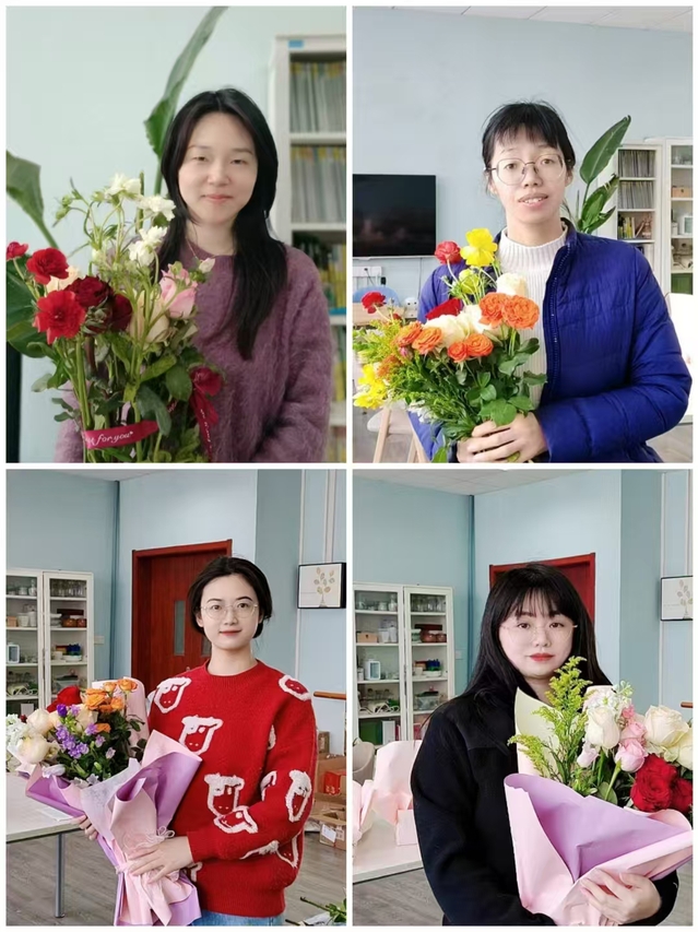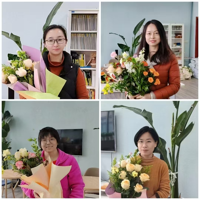花香相伴,美丽人生。学院工会为女教职工准备了品类多样的鲜花,有香槟玫瑰、红玫瑰、洋牡丹、风铃花等,女教职工们互相交流搭配技巧,兴致勃勃地挑选花材,精心修剪枝叶,将一朵朵鲜花编织成一个个美丽的花束。活动现场花香四溢,欢声笑语不断,大家尽情享受着插花艺术带来的乐趣,感受着生活的美好与诗意。